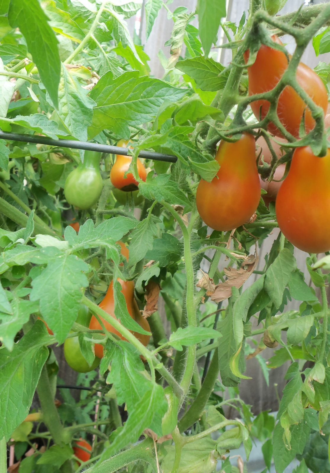 Also, the eggshells seemed to help with blossom end rot. Yay! The pear tomatoes are looking better for sure. Check it out!